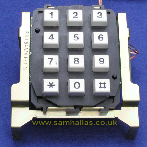 The push button unit has matured since the early version above. It is now Push Button Unit No 54A and has a pressed steel frame. Oddly, the bracket at the back where the relay unit was mounted is still present. The keypad is held in place by integral clips at the top and bottom.