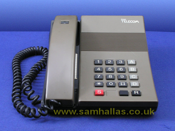A rather bulky offering from BT. The Ambassador, Telephone Number 8300, came in a range of colours including this Sunshine Yellow, the same colour as Buzby the canary used in BT's advertising at the time. The first to be designed specifically for the new style plug and socket. It was never a great success and was soon eclipsed by it neater successor, the Statesman below. However, the case design was the basis for instruments used with the Ambassador and Senator key telephone systems.