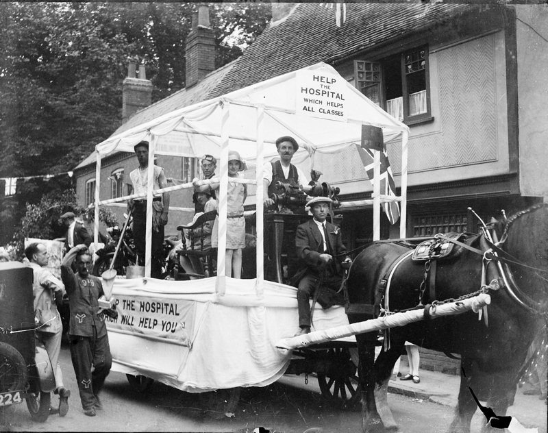 From as long ago as the 1920s Hitchin held a carnival in the summer to raise funds for the friends of the local hospitals. These pictures are from the Herts Pictorial in 1929 (Courtesy of N. Herts Museum). Click for a larger view.