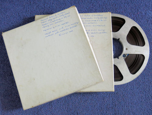 It was now time to re-spool the Saturday tape and spool off the Friday tape. From the recording notes I gathered that the original recordings had evidently been made on separate 7 inch reels and had later been spliced together and wound onto the 10½ inch NAB spool. I wonder why.